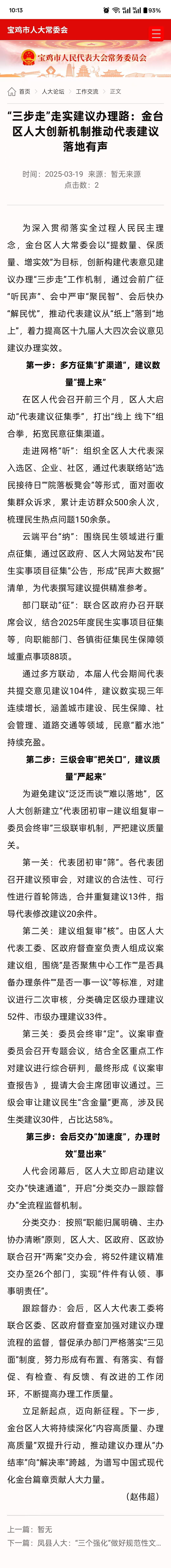 宝鸡人大:三步走”走实建议办理路金台区人大创新机制推动代表建议落地有声
