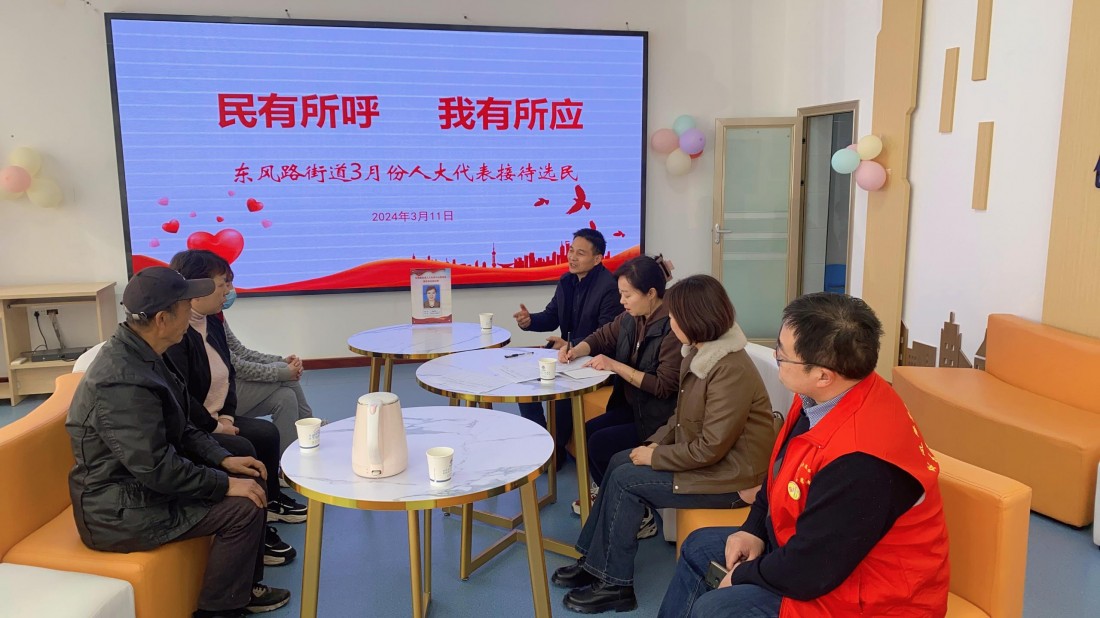 3月11日下午,东风路街道人大代表中心联络站组织人大代表开展3月份接待选民活动。区人大代表杨丽珺在宝铁社区社工站与前来反映问题的选民代表亲切交谈,悉心听取他们的意见建议,切实发挥好人大代表密切联系群众的桥梁纽带作用。