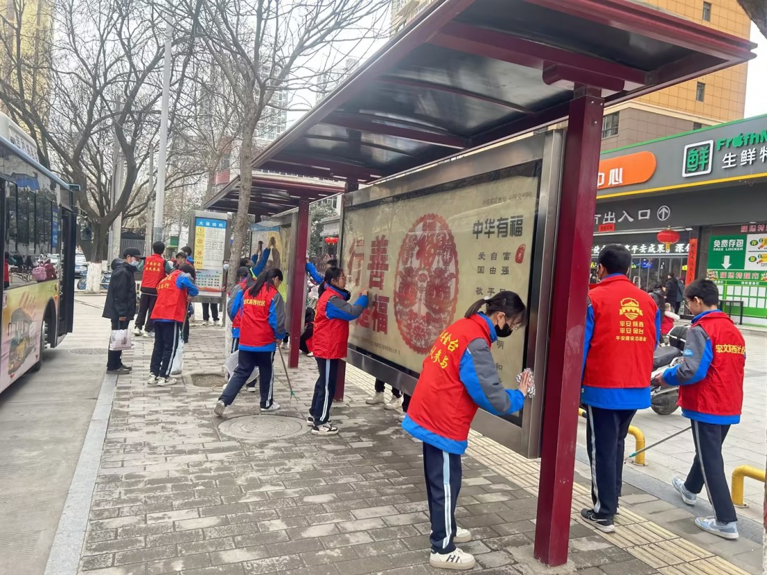 在“学雷锋志愿服务活动”当天,吴老师为前来社区参加志愿服务的三迪中学宏文校区共青团员们积极地宣传雷锋精神。一个个感人至深的雷锋故事、一声声铿锵有力的宣讲,为孩子们传递着榜样的力量。宣讲活动结束后,吴老师又带领共青团员们拿起夹子,抹布等清洁工具,共同清理沿街的环境卫生,将散落在道路上、草丛里的烟头、废纸、包装袋等垃圾捡拾起来,铲除野广告,清洗公交站牌。