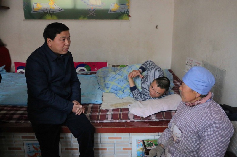 在贫困残疾人王红忠家里,唐恩岐详细询问其身体及家庭生活现状,得知其因车祸致残,下半身瘫痪,妻子离家出走,由家中七旬老母独自照顾的情况后,唐恩岐叮嘱随行的蟠龙镇相关领导,对于丧失劳动能力、无收入来源群众的生活难题,要充分享受各种政策,尽可能为他们多解决一些实际困难,传递好党和政府的关怀和温暖。