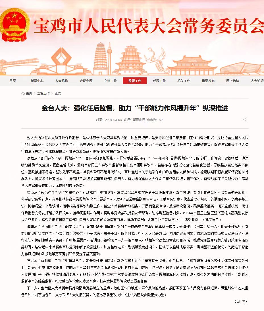 宝鸡人大:金台人大强化任后监督,助力“干部能力作风提升年”纵深推进