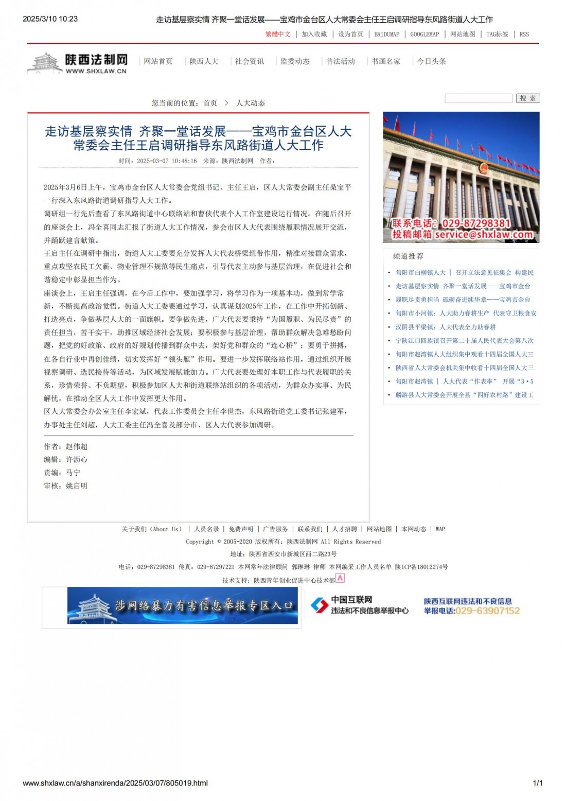 [上一页] 陕西法制网:宝鸡市金台区人大常委会副...