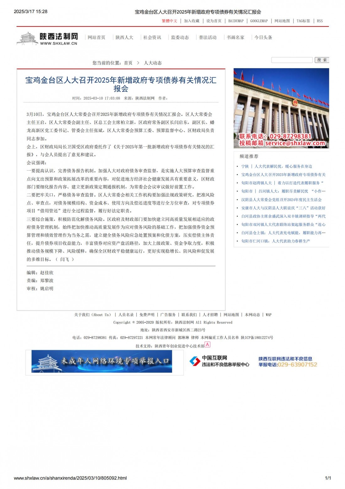 陕西法制网:宝鸡金台区人大召开2025年新增政府专项债券有关情况汇报会